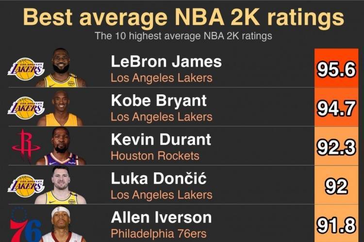 8月23日,美媒HoopsHype晒出NBA球员2K历史平均评分最高的10位球员,具体如下: